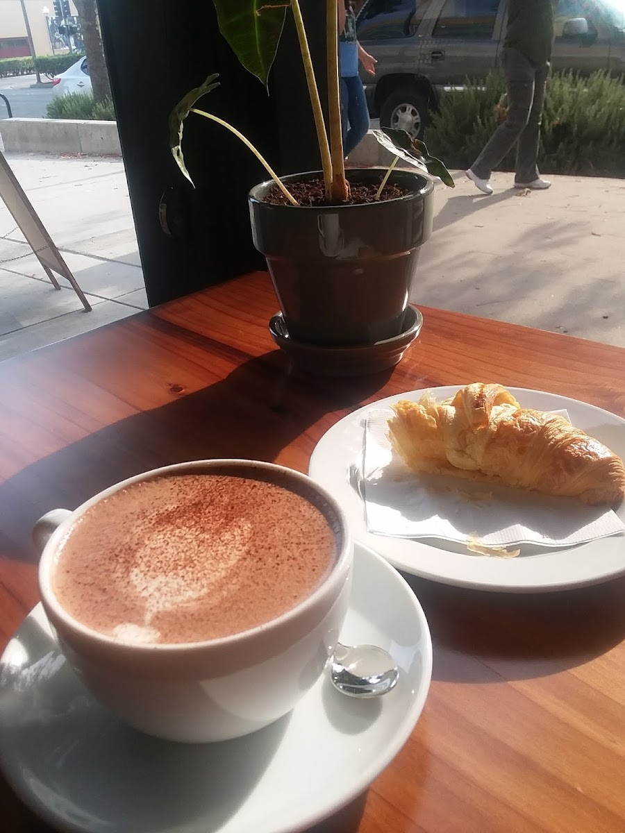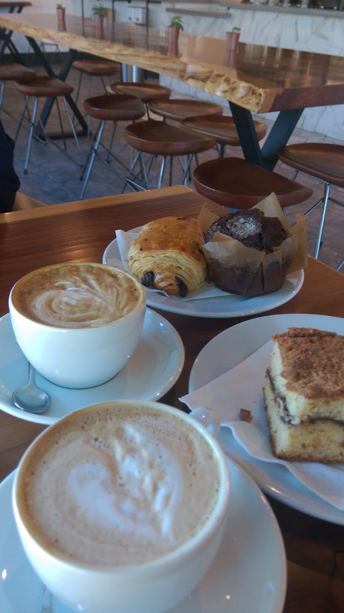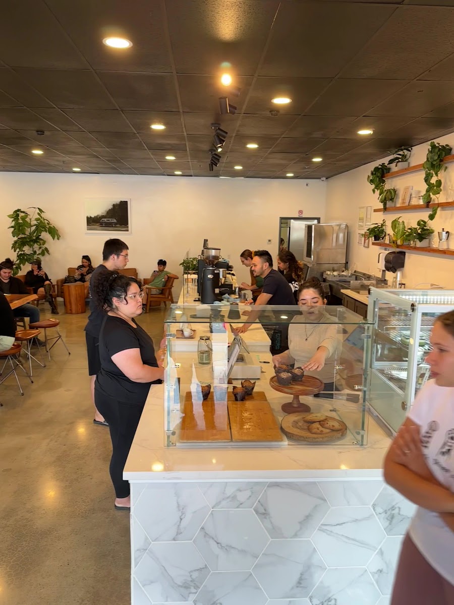 Cute little coffee shop, very good espresso, lots of beautiful plants, nice people, and a few treats. They have a nice espresso machine... shiny! Tons of plants all over which I love. They have beautiful natural wood tables that are stunning! The overall ambiance is very relaxing. Swing by, get a cappuccino, sit down, and chill.